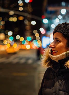 out. But best of all to see were the wonderful people of New York out and about the city on this A few minutes into their walk, Lawrence's cell phone rang. Stopping to check his phone, Lawrence spoke to Margaret saying, "I better take this. Give Margaret was a bit annoyed with this untimely interruption. A minute for Lawrence on Up ahead, there was a big display of fancy dresses in a store window. She moved up That's a beautiful dress there in the center! she thought, seeing a burgundy beaded tulle Excited a little, she looked at the shoes and other accessories for it that were also on A few feet away from her was a young Hispanic woman. She had her eye on the same "That's lovely isn't it," said Margaret, speaking warmly to the woman. Interrupting her gaze, the Hispanic woman gave Margaret a brief look, and then turned "It sure is," she said. "But I like these shoes better," replied Margaret, pointing to shoes shown with another "I love them all!" the young woman responded energetically, breaking into a smile. Her animated response captivated Margaret and she, too, broke into a smile. "You're so The woman was waiting on a bus, and Margaret was waiting on her husband, so there For the rest of this encounter, we shall now go to Margaret's journal and read what she As Lawrence and I were walking downtown this evening, I met a very nice young woman We looked at other dresses inside the store, and then for fun I asked the sales attendant to Finally, she smiled and gave me hug, accepting the gift. Her eyes beamed as she modeled Waiting outside, Lawrence heard all about Margaret's joyful experience with her new They had gone only two blocks more when they were greeted by a couple from Los The last few blocks were uneventful, and they finally reached the theatre entrance where The movie they were about see, America, and the Ideal, was by many accounts
